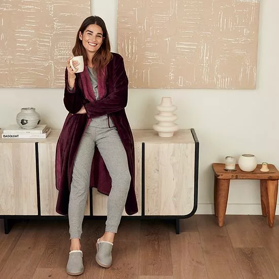 Featuring a cozy double-plush fabric with faux suede and satin accents, this women’s Koolaburra by UGG open-front robe abounds with luxurious style.